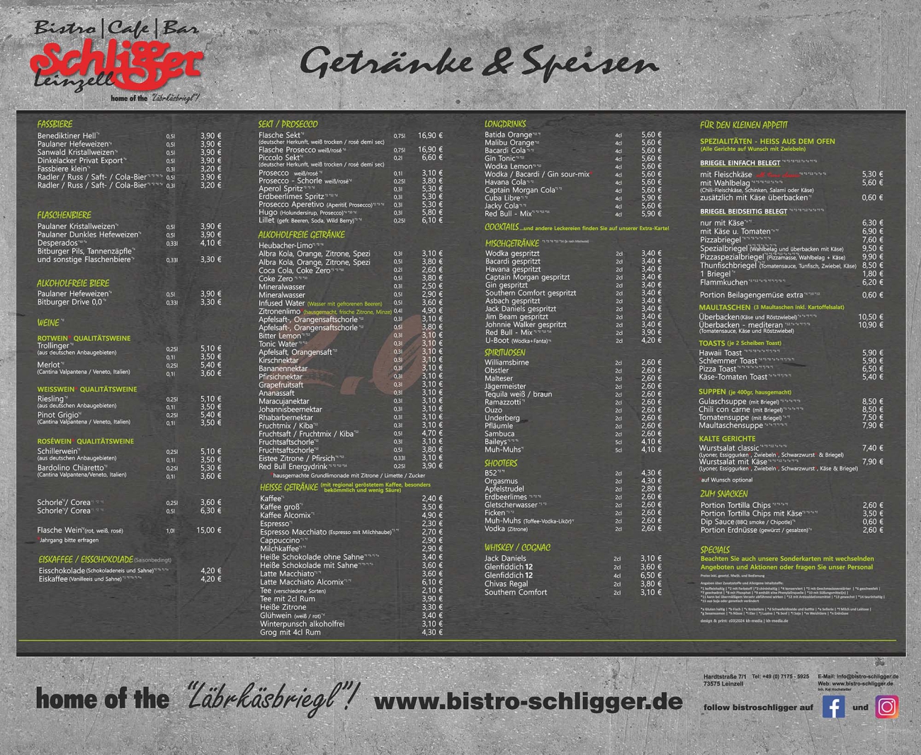 Unsere aktuelle Speisekarte mit allen Speisen und Getränken im Überblick